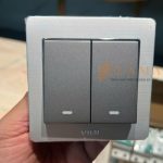 • Màu sắc: Mặt công tắc màu ghi, viền ốp nhôm xước màu bạc.
