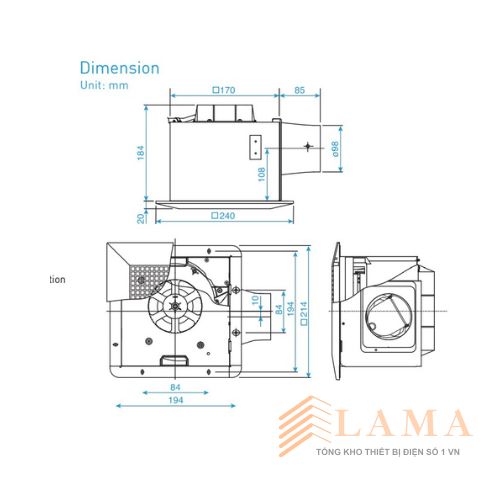 Quạt Hút Âm Trần – FV-24CD9 – Có Ống Dẫn ɸ100mm- 1 Cấp Tốc Độ – 13.5W – Panasonic